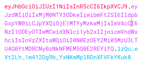 Podemos dividir o JWT em três partes: header, payload e signature, abaixo está um exemplo de um JWT.